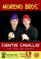 El próximo 19 de noviembre estaremos en la Sala Búho Real de Madrid con nuestro show de humor titulado "Cuentos Canallas". A todos los que nos quieran acompañar en esta cita les contaremos historias singulares, absurdas y con mucho humor...